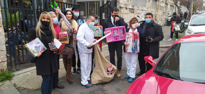 Nella stessa mattinata a sorpresa, per proseguire il cammino iniziato lo scorso Natale con l’evento “Note per la Leucemia” al Conservatorio di Santa Cecilia, organizzato dalla giornalista Paola Zanoni e il regista Alessandro Di Filippo, sono stati consegnati giocattoli al reparto di Ematologia pediatrica in Via Benevento, anche qui per rispetto della normativa anti Covid senza entrare nell’Ospedale, con la collaborazione del coordinatore infermieristico Marco Fabbri e Guendalina Sacconi, con l’attore Franco Di Maio con una sola Ferrari al seguito per la Scuderia Ferrari Club Roma Appia Antica, Bianca Vertolli, Francesco Rosci, Giovanni Roberti e la prima Miss sorda per Miss Italia 85 Elisabetta Viaggi.