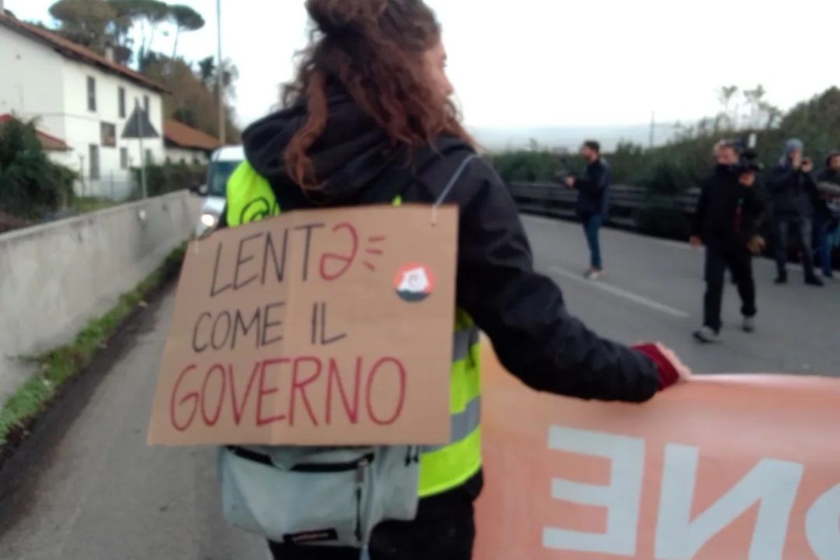 Roma, blitz di Ultima Generazione: “marcia lenta” degli attivisti in Via Flaminia
