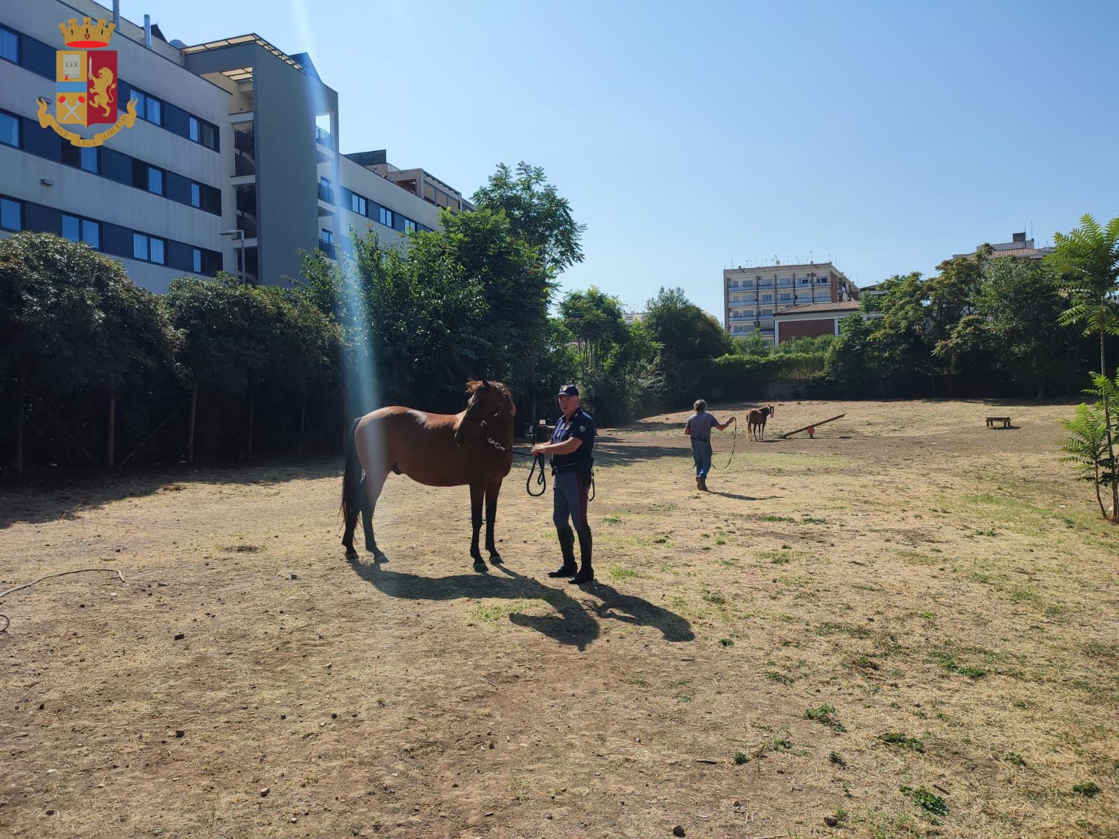 I 3 cavalli, apparentemente agitati, si erano posizionati su una piccola area verde adibita a parco giochi per bambini nei pressi di strade trafficate e gli agenti insieme al personale del Corpo di Polizia locale di Roma Capitale e Veterinari dell’Asl sono riusciti a calmarli e metterli in sicurezza. Poco dopo gli animali sono stati recuperati dai proprietari del maneggio.