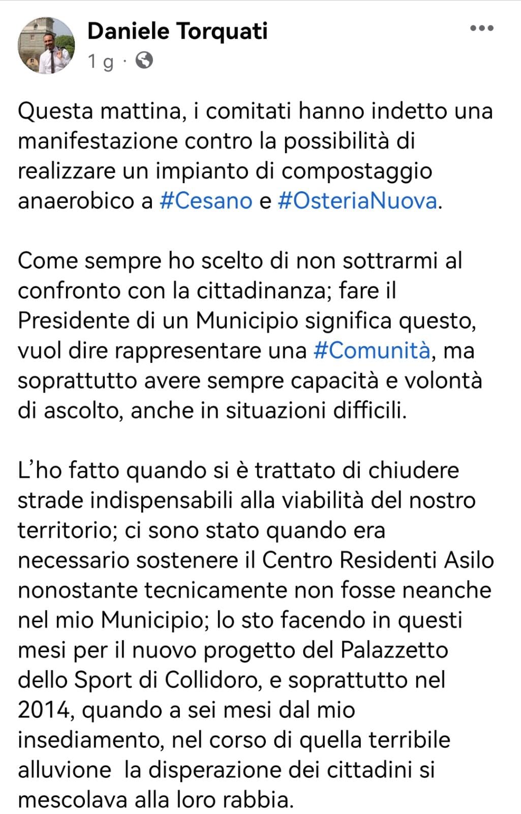 Il commento di Daniele Torquati (XV Municipio)