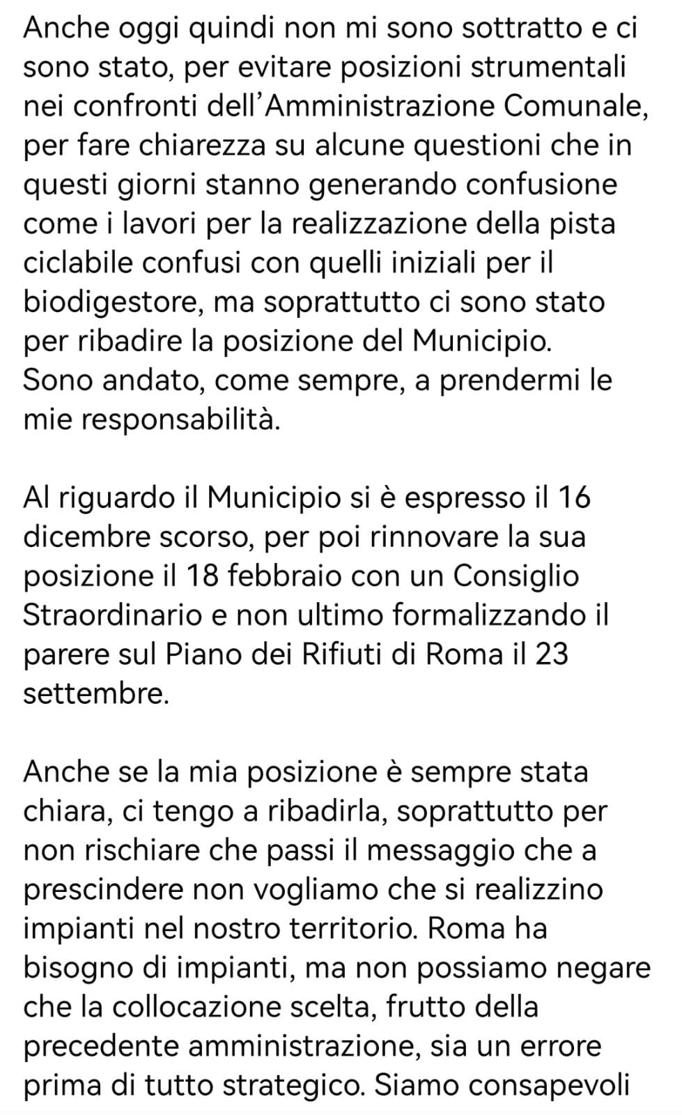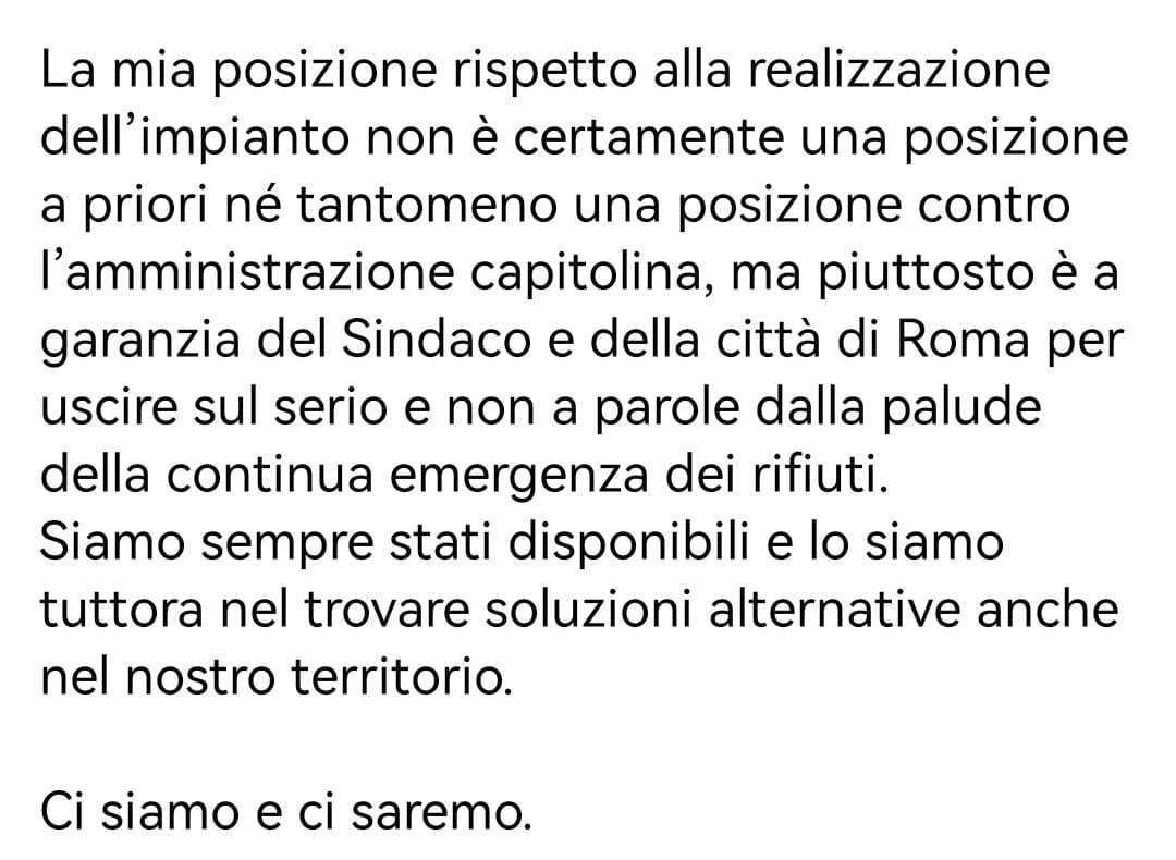 In merito, con un lungo posto sulla propria pagina Facebook, si è espresso anche il presidente del XV Municipio, Daniele Torquati che ha sottolineato le proprie perplessità in merito alla costruzione del Biodigestore. Va infine detto che per il progetto, che il Sindaco punta a far partire nel 2023, sarebbero già stata finanziati i fondi sia di Ama (38milioni) sia del Pnrr (80milioni).