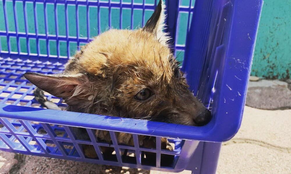 Roma, cucciolo di volpe cade nella piscina della scuola: il salvataggio (FOTO)