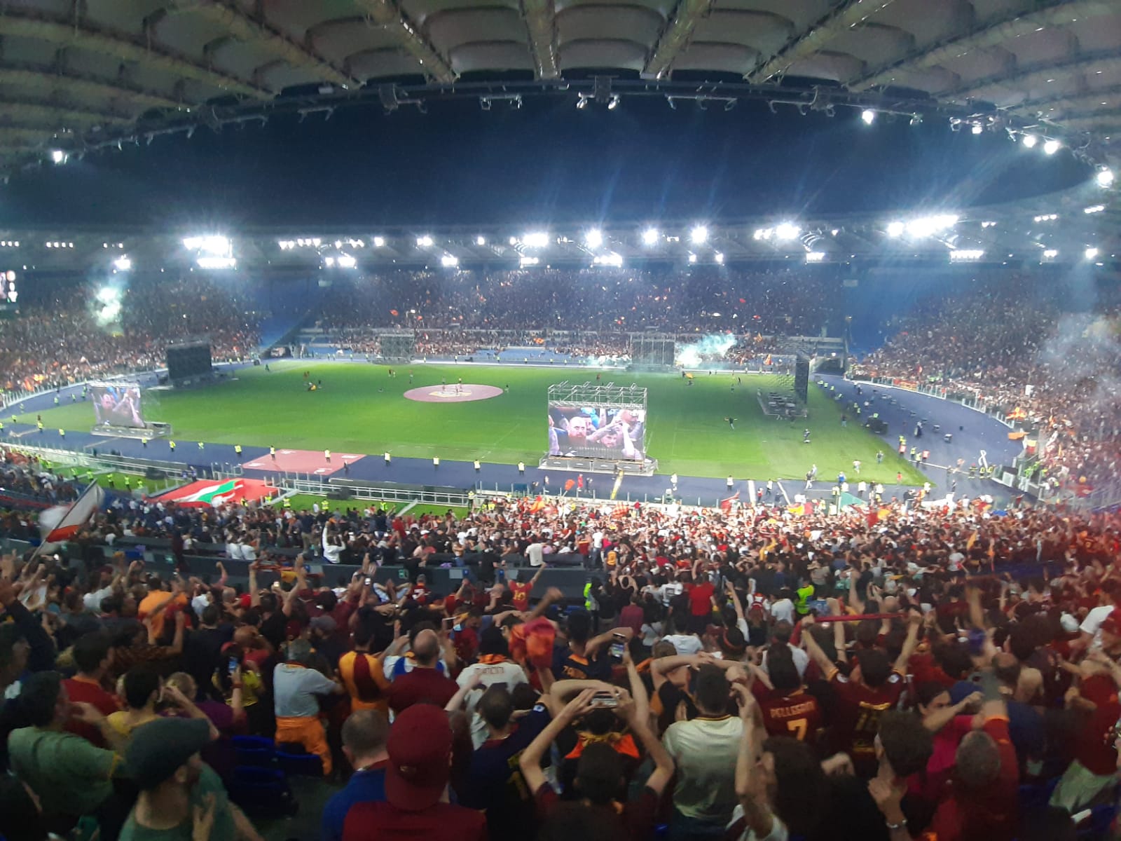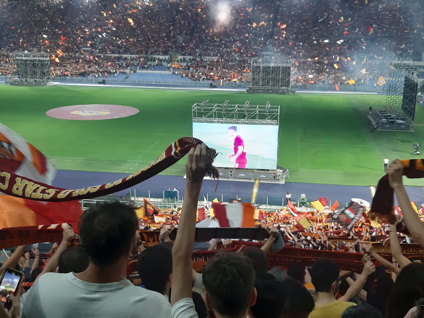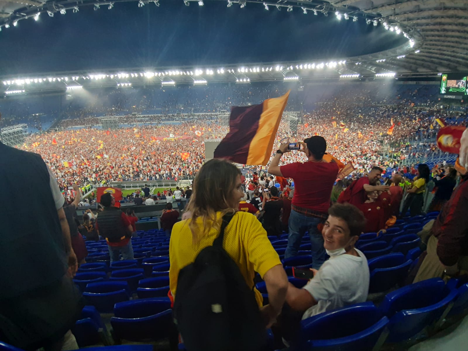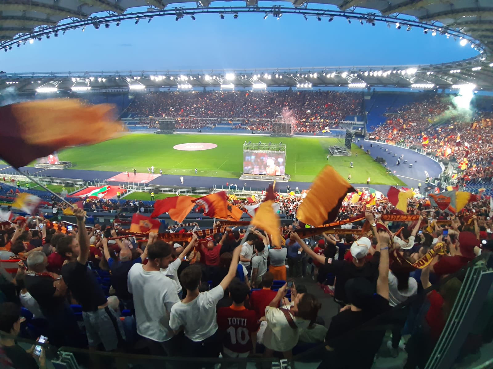 Roma campione dopo la vittoria contro il il Feyenoord. I giallorossi vincono la Conference League ed è festa grande nella città eterna. Cori, caroselli, baci e abbracci. Il popolo giallorosso ieri sera è impazzito di gioia. Il gol di Zaniolo ha fatto esultare gli oltre 50 mila tifosi accorsi in uno stadio Olimpico stracolmo e surreale. I maxischermi accorciavano la distanza con Tirana e il boato di gioia risuonava in tutta la città.