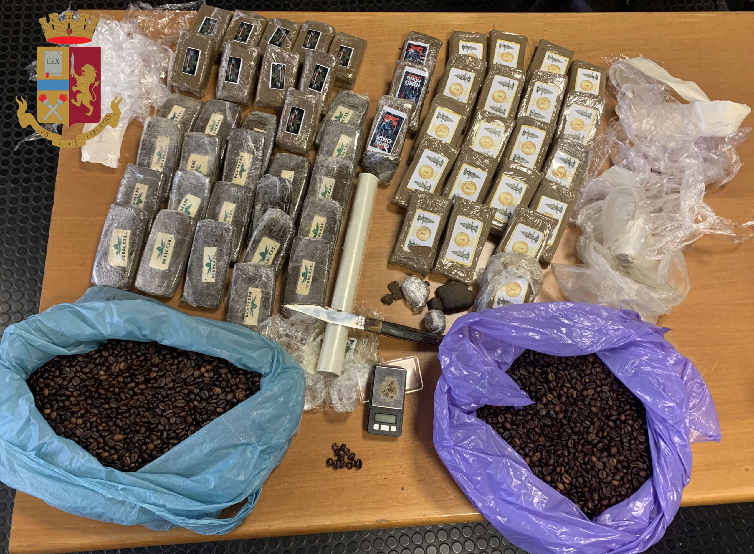 Tra questi spicca il sequestro avvenuto nella zona di La Rustica da parte degli investigatori del V Distretto di P.S. Prenestino: i poliziotti hanno seguito una “vecchia conoscenza” che entrava ed usciva da un box auto. Quando hanno deciso di bloccare D.O.G , romano di 43anni, lo hanno trovato con indosso alcune dosi di hashish. La successiva perquisizione del box dove armeggiava il 43enne ha portato al rinvenimento di 53 panetti di hashish più alcuni strumenti per il confezionamento delle singole dosi. Inutile lo stratagemma pensato da D.O.G. che per coprire l’odore acre del “fumo” lo aveva sepolto con 5 kg di chicchi di caffè. In totale la droga sequestrata pesa 5, 5 kg e la stima delle dosi ricavabili è di più di 60 mila. L’uomo è stato arrestato e per lui la magistratura, dopo la convalida dell’arresto, ha disposto gli arresti domiciliari con braccialetto elettronico.