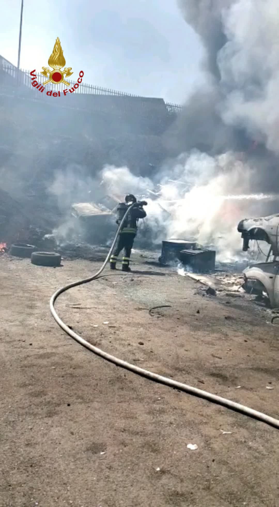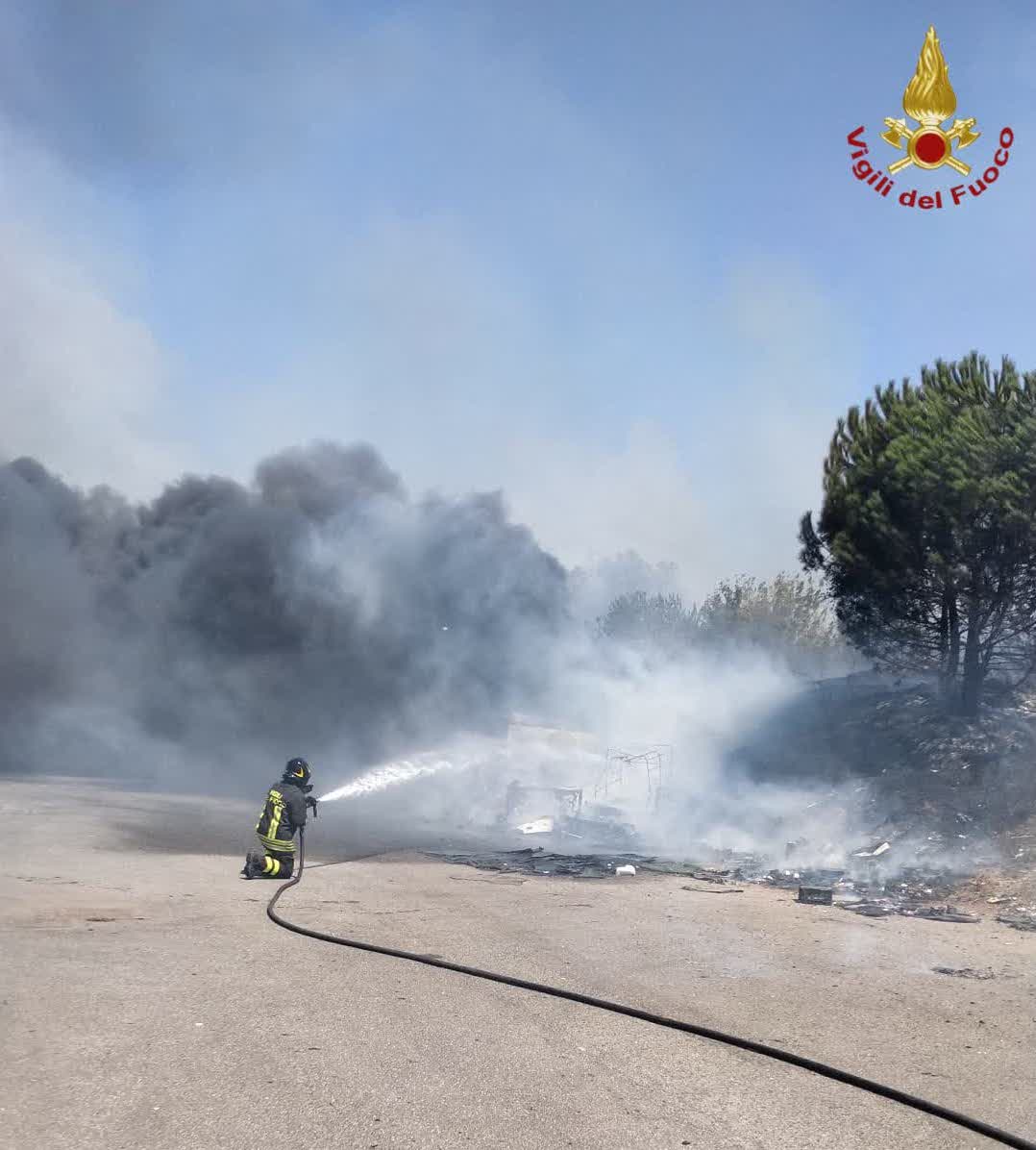 Un grosso incendio è divampato alle ore 12:00 circa all’interno di un autodemolitore a Roma, in via Acqua Acetosa Ostiense, all’altezza del civico 41. Una colonna di fumo nero è visibile a diversi chilometri di distanza, mentre le fiamme, altissime, iniziate dalle sterpaglie, hanno avvolto auto e roulotte.