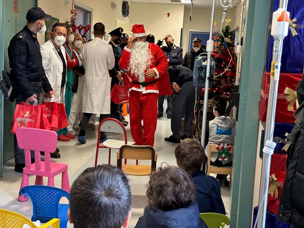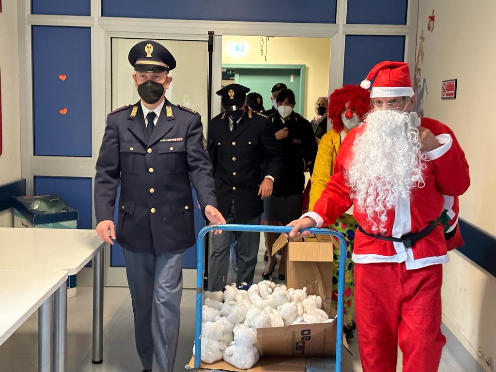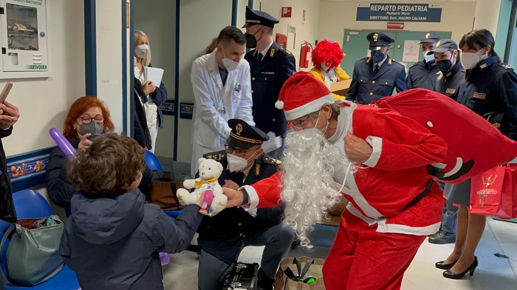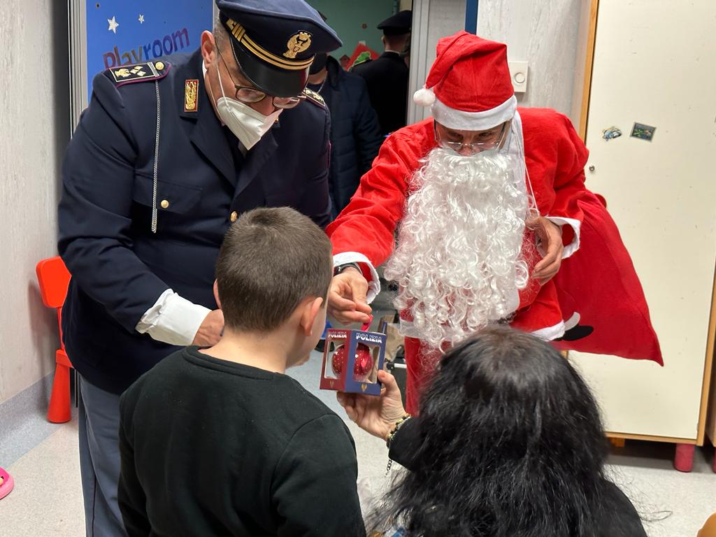 Il Babbo Natale della Polizia di Stato stamattina è arrivato anche dai bambini ricoverati presso il reparto di pediatria, di chirurgia pediatrica e infine presso il pronto soccorso pediatrico dell’ospedale San Camillo. I poliziotti del XII Distretto Monteverde, della Polizia Postale e della Polizia Stradale hanno consegnato peluches, giochi e cioccolata ai bimbi, anche piccolissimi, ricoverati o in attesa di visita.