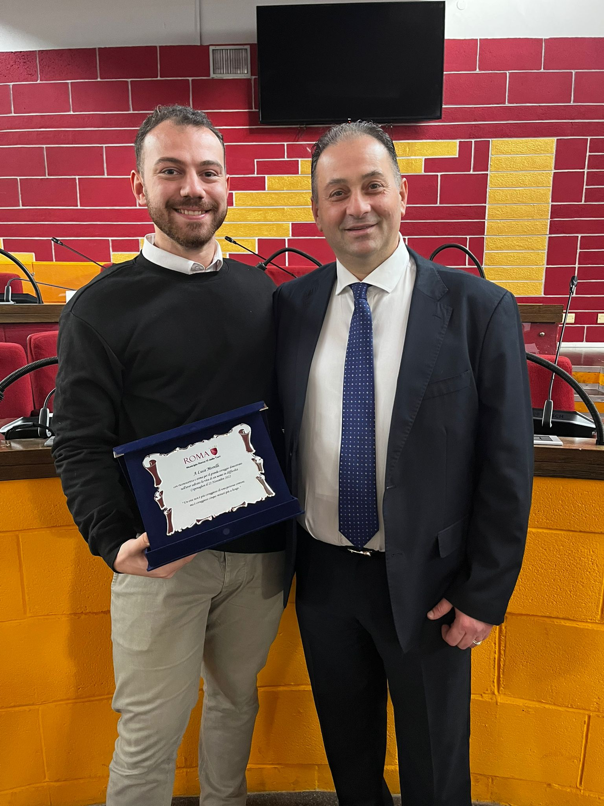 Invece, oggi, a sorpresa il presidente del VI Municipio delle Torri, Nicola Franco, ha voluto, con una breve e raccolta cerimonia, rendere omaggio a Luca, il giovane eroe che ha messo a repentaglio la sua stessa vita per salvarne un’altra. “Luca Morelli è un ragazzo di 26 anni di Tor Bella Monaca che – ha infatti detto Franco – non ha pensato due volte a rischiare la propria vita pur di salvare quella di un uomo a Copenaghen, caduto nell’acqua gelida dei canali nel novembre scorso. Luca può essere il simbolo di una Tor Bella Monaca ben lontana dalla rappresentazione mediatica a cui oggi siamo purtroppo abituati: una Tor Bella Monaca di amore e coraggio, cuore pulsante di una periferia viva e meritevole di riscatto”.