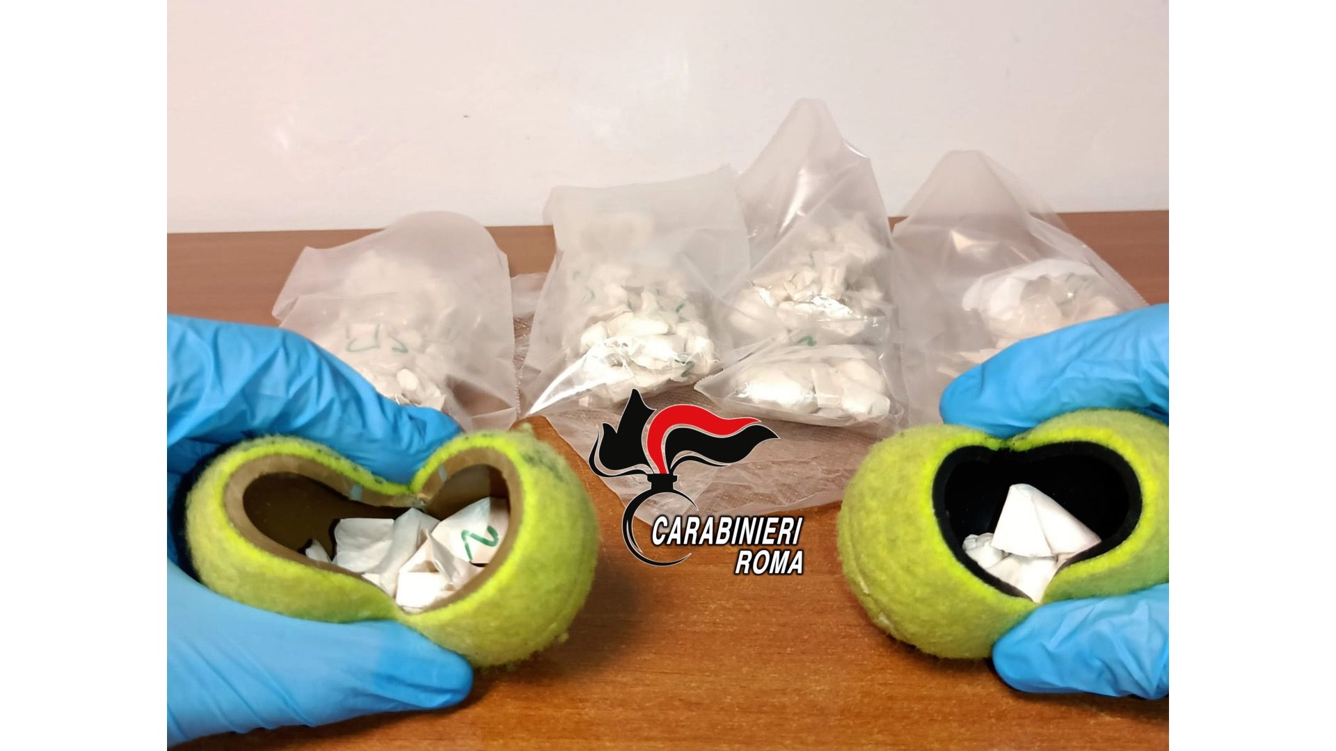 I Carabinieri durante le attività, hanno osservato le due palline, che dal punto di vista estetico non presentavano alcuna anomalia ma, dopo una lieve pressione sulla superficie esterna delle palline, i militari hanno scoperto che c’era un taglio laterale, che permetteva al 40 enne di nascondere all’interno 10 involucri di cocaina. Sull’ uomo i Carabinieri hanno rinvenuto e sequestrato la somma di 240 euro, ritenuta il provento dell’illecita attività di spaccio. L’arrestato è stato accompagnato in caserma, dove resterà trattenuto in attesa del rito direttissimo, dovrà difendersi dall’accusa di detenzione e spaccio di sostanza stupefacente.