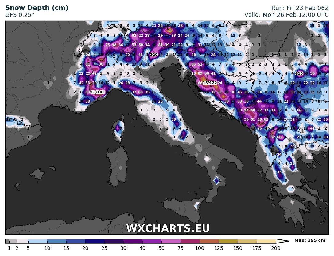 La lingua gelida tuttavia non interesserà per intero il territorio Italico, ma colpirà principalmente le regioni settentrionali e quelle centrali, mentre le regioni meridionali rimarranno in quello che possiamo definire un “limbo”, a contatto da una parte con il gelo Siberiano e dall’altra con aria più mite di matrice Africana.