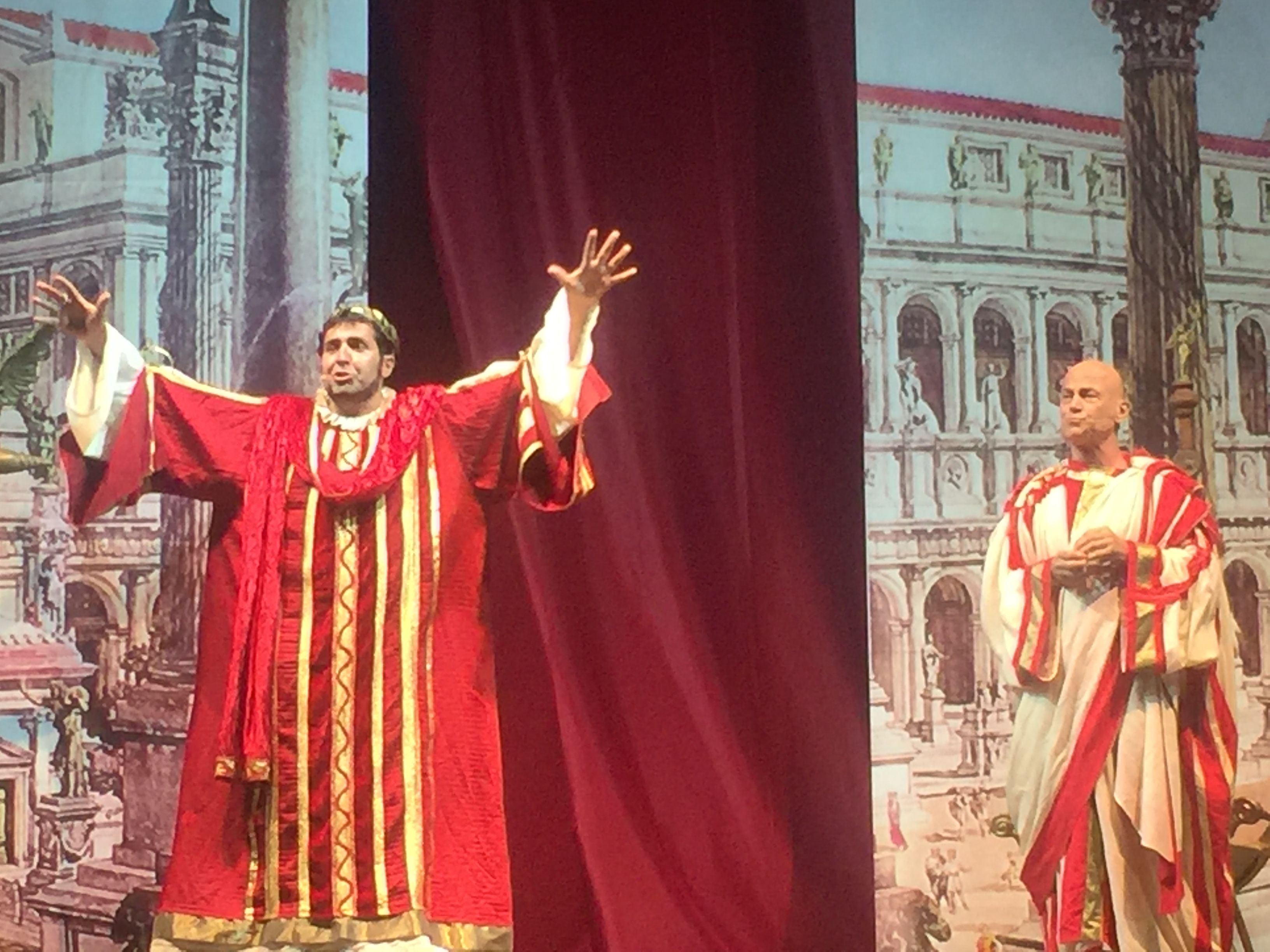Un’ironia sottile, a volte diretta e a volte un po’ più complessa, che porta lo spettatore a riflettere dopo la risata, ha caratterizzato l’intero spettacolo, che rende attuali – attraverso riferimenti a personaggi come Berlusconi e Trump, ma anche a tanti “innominati” facilmente riconoscibili – personaggi vissuti duemila anni fa.