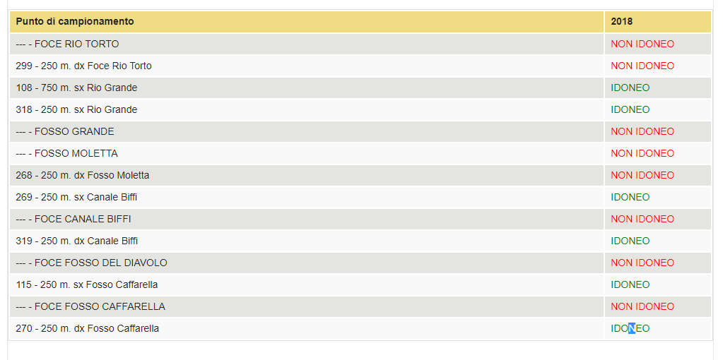 Su 14 punti attenzionati tuttavia soltanto 6 hanno ottenuto un giudizio di idoneità, lo stesso scenario delineatosi del resto lo scorso anno, anche se non emergono particolari allarmi per ciò che riguarda la presenza di batteri dannosi per la salute umana (foto 2).