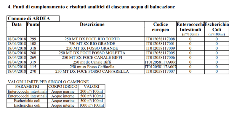 L’Arpa ha reso noti i primi dati dei campionamenti effettuati lungo le coste laziali per monitorare lo stato di salute delle nostre acque. Ad aprile 2018 rilevamenti sono stati effettuati come di consueto anche nel comune di Ardea.