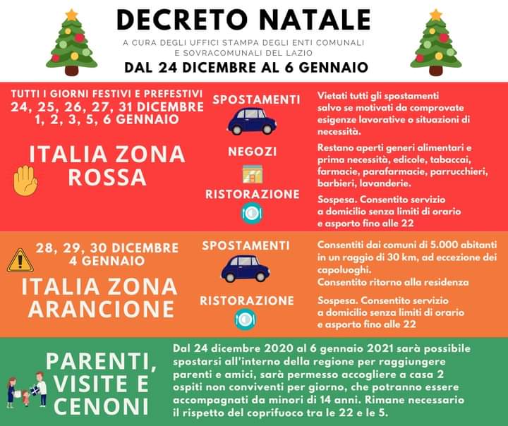 “Nei giorni festivi e prefestivi compresi tra il 24 dicembre 2020 e il 6 gennaio 2021 sull’intero territorio nazionale si applicano le misure di cui all’articolo 3 del decreto del Presidente del Consiglio dei ministri 3 dicembre 2020“.