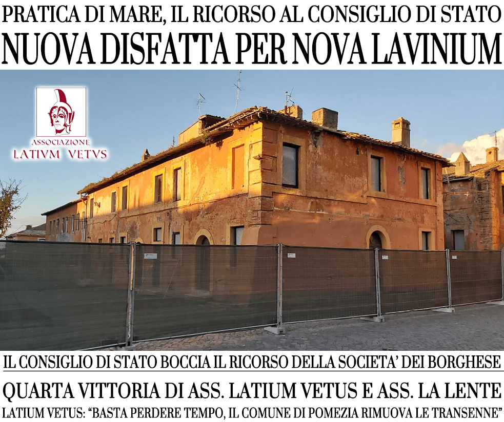 « , ! », dichiara in merito l’Associazione Laztium Vetus. «Si tratta della quarta cocente sconfitta della società riconducibile alla Famiglia Borghese e, di contro, di una nuova vittoria dell’Associazione Latium Vetus e dell’Associazione La Lente che da anni si battono affinché sia ripristinata la #legalità nella questione inerente la fruizione delle aree viarie di Pratica di Mare. , ‘ , , . . !», conclude la nota.