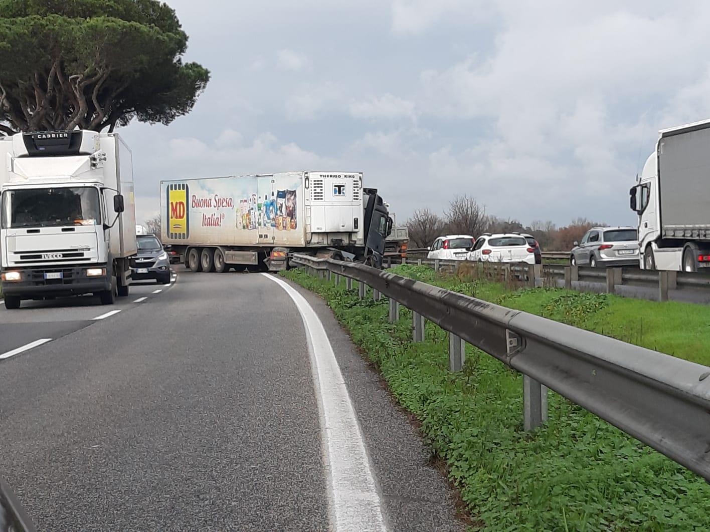Incidente sulla Pontina poco fa. Il sinistro, per cause in fase di accertamento, è avvenuto all’altezza di Castel Romano in direzione sud, Latina/Pomezia. Un mezzo pesante si trova in questo momento fuori strada, letteralmente “sopra” il guard rail che divide le due carreggiate. Il traffico in zona è in forte aumento.