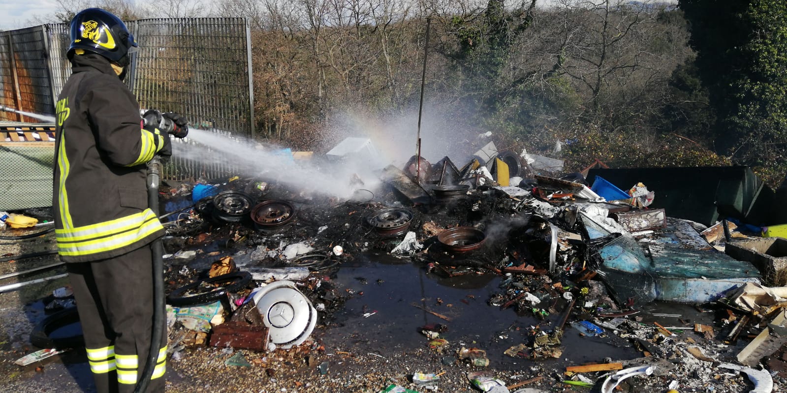 Ad andare a fuoco cumuli di rifiuti di tutti i tipi, dalla spazzatura fino a reti, materassi e pneumatici.
