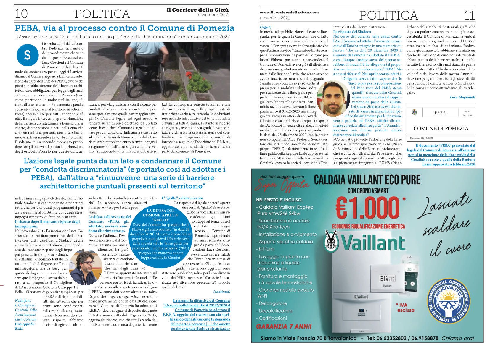 «Come detto più volte, l’adozione delle linee guida per la predisposizione del Peba (Piano di Eliminazione delle Barriere Architettoniche) è cosa ben diversa dal Peba stesso che, per quanto riguarda la nostra Città, vogliamo sia pienamente integrato al PUMS (Piano Urbano della Mobilità Sostenibile), affinché si possa parlare concretamente di piena accessibilità. Il Comune di Pomezia ha vinto il finanziamento regionale atteso e il PEBA è attualmente in fase di redazione. Inoltre, come già annunciato, abbiamo stanziato un fondo di 1 milione di euro per interventi di abbattimento delle barriere architettoniche in tutto il territorio, cifra mai stanziata prima nella nostra Città. E’ la dimostrazione della volontà e del lavoro della nostra Amministrazione per garantire a tutti gli stessi diritti e per rendere Pomezia sempre più inclusiva. Sulla causa in corso attendiamo gli esiti legali».