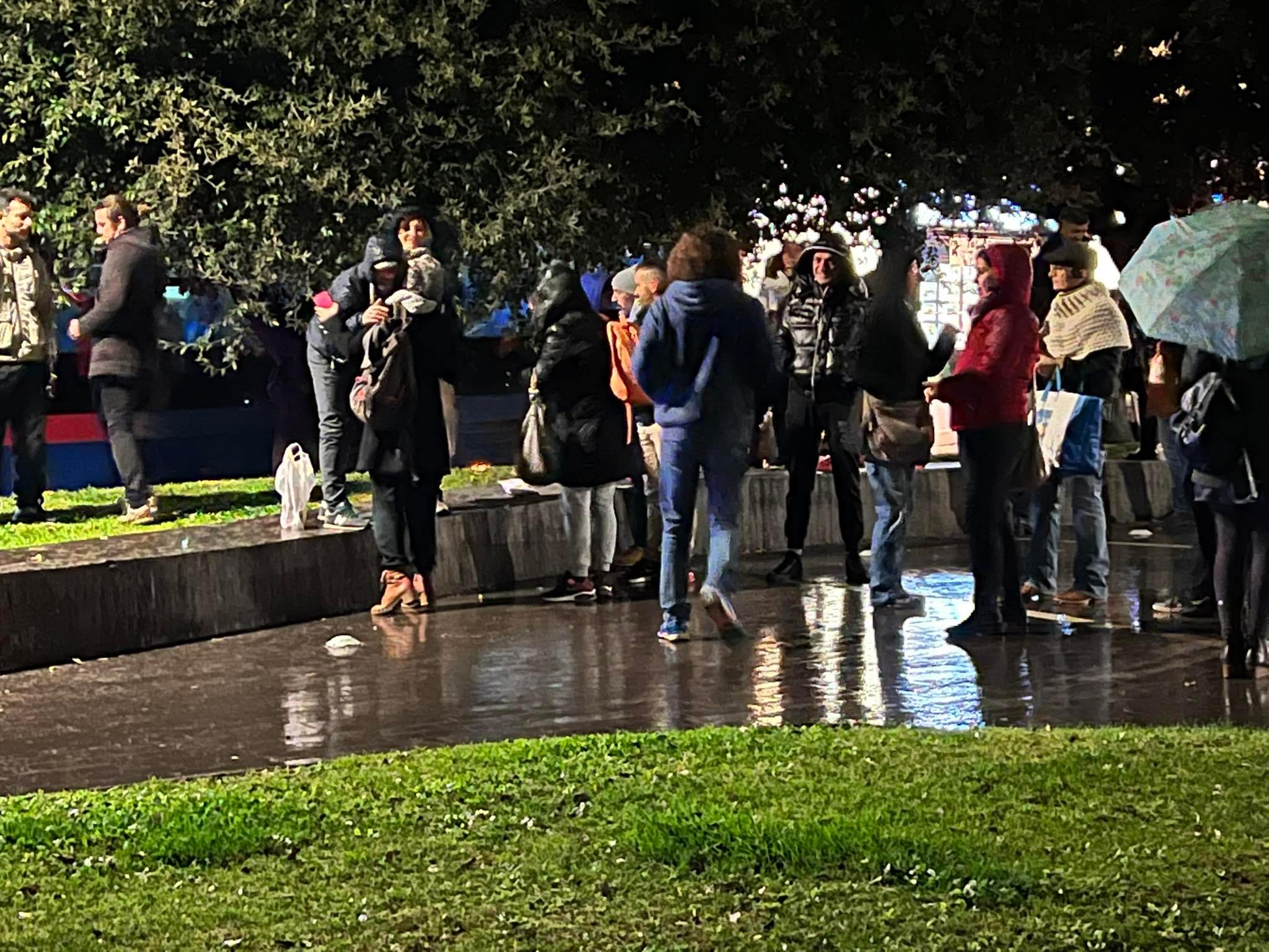 Una delle testimonianze arriva da Maurizio Martucci, presente sul posto. «Luci blu lampeggianti nell’oscurità della sera. Quattro gazzelle dei Carabinieri, un’auto della Polizia Locale. Una decina di agenti in divisa, compreso personale in borghese e taccuini per annotare gli estremi dei documenti. Diversi gli identificati: “non potete sostare qui fermi, dovete distanziarvi o indossare la mascherina”», racconta.