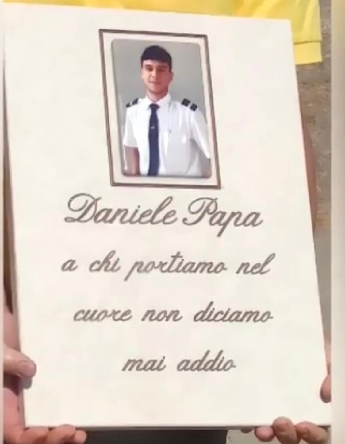 Il giovane Daniele Papa di 23 anni è stato trovato morto dopo che l’aereo dove si trovava, un biposto della scuola di volo UrbeAero, era caduto e si era inabissato nel Tevere all’altezza di Via Vitorchiano il 25 maggio scorso. L’istruttore si era lanciato prima che l’aereo impattasse con l’acqua, in un punto in cui il Tevere è molto profondo. Ma per Daniele, purtroppo, non c’è stato nulla da fare.
