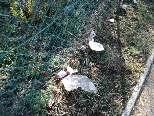 Con un paio di pedalate sorpasso Via Singen e mi dirigo verso Via Fratelli Bandiera. Da lontano osservo un bel colpo d’occhio che svanisce però pian piano che mi avvicino. Noto tre individui, cittadini stranieri, intenti a bere sulla panchina; impegno la salita e già non ci sono più. Ma il “ricordo” della loro presenza è più vivido che mai: i tre lasciano una busta nera appesa alla panchina (torneranno?). Guardo dentro: diversi alcolici, compreso l’immancabile vino in cartone, riempiono la busta. Altri rifiuti sono sparsi qua e là e ci sono dei danni anche ad alcuni giochi. Termino il tour con il campetto polivalente: dovrebbe essere chiuso ma non lo è, perché un taglio nella recinzione permette di accedervi.