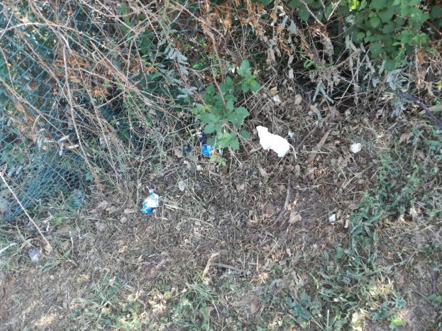 Con un paio di pedalate sorpasso Via Singen e mi dirigo verso Via Fratelli Bandiera. Da lontano osservo un bel colpo d’occhio che svanisce però pian piano che mi avvicino. Noto tre individui, cittadini stranieri, intenti a bere sulla panchina; impegno la salita e già non ci sono più. Ma il “ricordo” della loro presenza è più vivido che mai: i tre lasciano una busta nera appesa alla panchina (torneranno?). Guardo dentro: diversi alcolici, compreso l’immancabile vino in cartone, riempiono la busta. Altri rifiuti sono sparsi qua e là e ci sono dei danni anche ad alcuni giochi. Termino il tour con il campetto polivalente: dovrebbe essere chiuso ma non lo è, perché un taglio nella recinzione permette di accedervi.