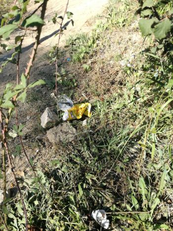Con un paio di pedalate sorpasso Via Singen e mi dirigo verso Via Fratelli Bandiera. Da lontano osservo un bel colpo d’occhio che svanisce però pian piano che mi avvicino. Noto tre individui, cittadini stranieri, intenti a bere sulla panchina; impegno la salita e già non ci sono più. Ma il “ricordo” della loro presenza è più vivido che mai: i tre lasciano una busta nera appesa alla panchina (torneranno?). Guardo dentro: diversi alcolici, compreso l’immancabile vino in cartone, riempiono la busta. Altri rifiuti sono sparsi qua e là e ci sono dei danni anche ad alcuni giochi. Termino il tour con il campetto polivalente: dovrebbe essere chiuso ma non lo è, perché un taglio nella recinzione permette di accedervi.