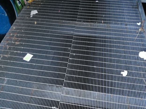 Uno dei giochi per i bambini (sui tre presenti) è rotto. Torna anche qui il problema dell’erba alta in forma più marcata; al livello di pulizia la situazione non è impeccabile, in particolar modo procedendo verso la piazza. Lì, in quell’opera architettonica da me mai compresa, la situazione, tra scritte e cartacce, è anche peggiore.