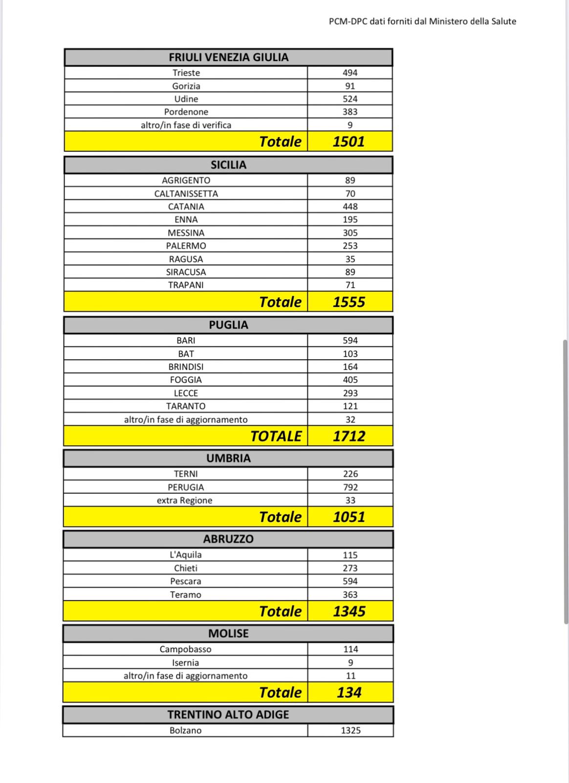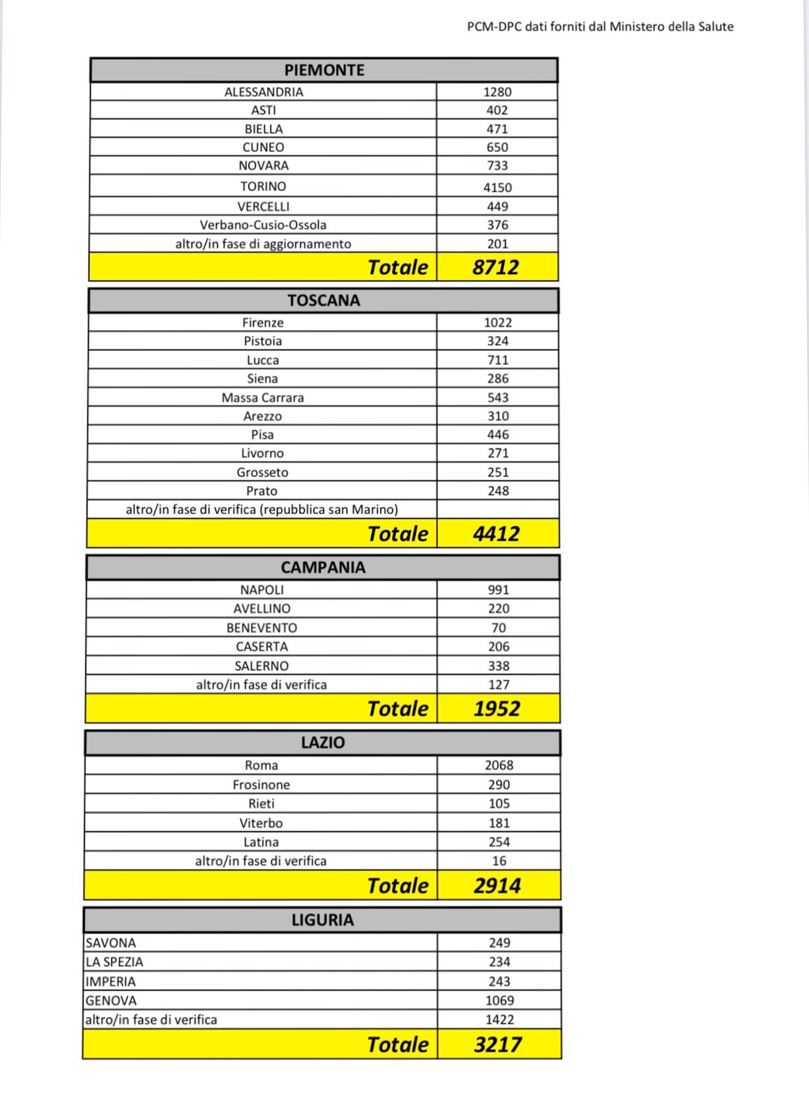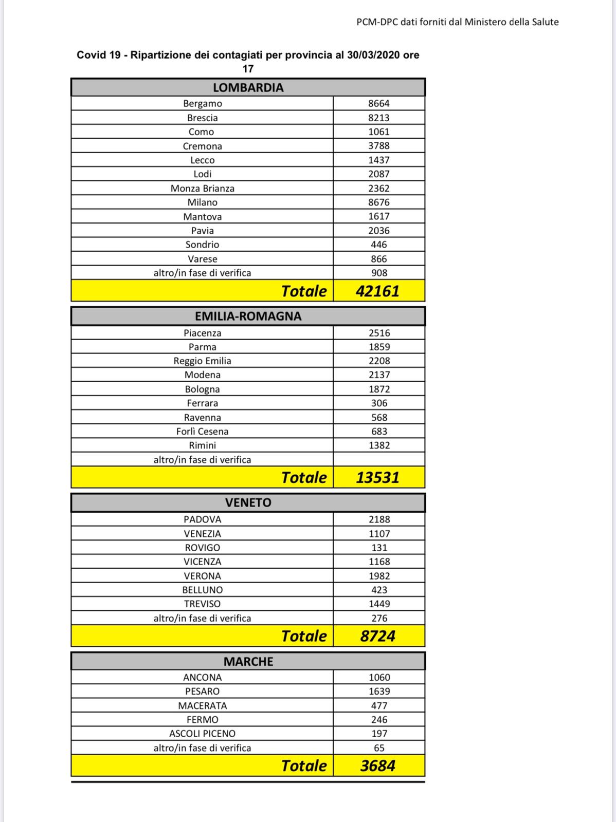 Coronavirus: i dati aggiornati al 30marzo 2020 e la ripartizione per Regione