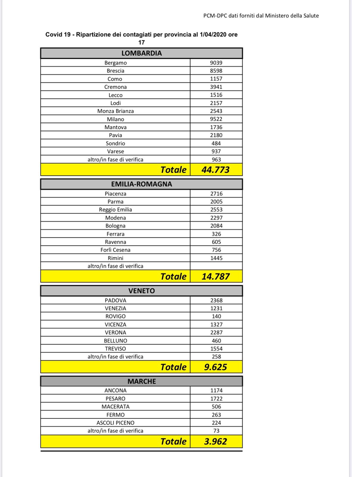 Coronavirus: i dati aggiornati al 1 aprile 2020 e la ripartizione per Regione