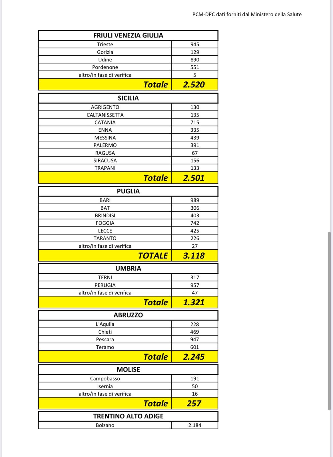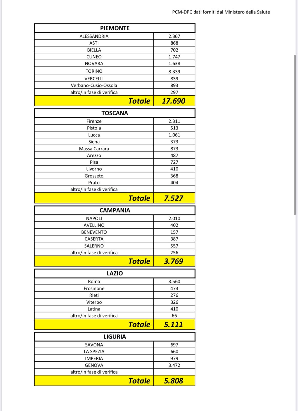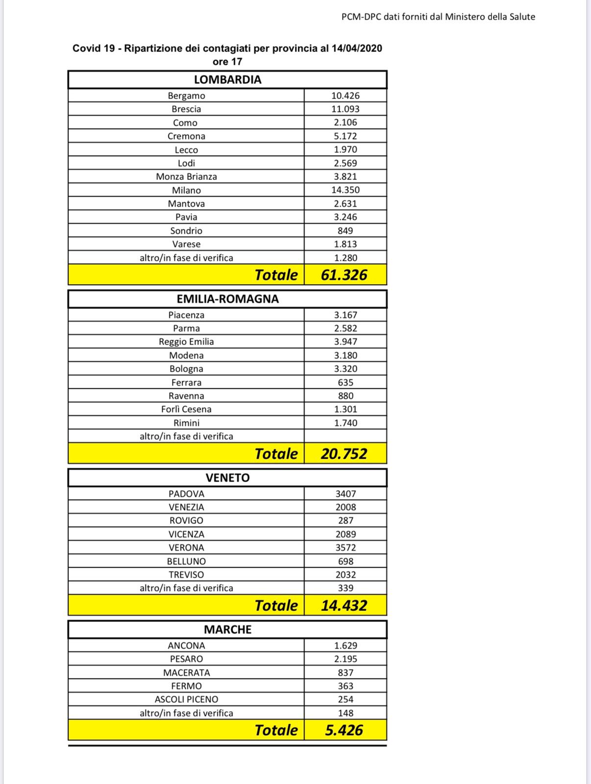 Coronavirus: i dati aggiornati al 14 aprile 2020 e la ripartizione dei contagiati per Provincia