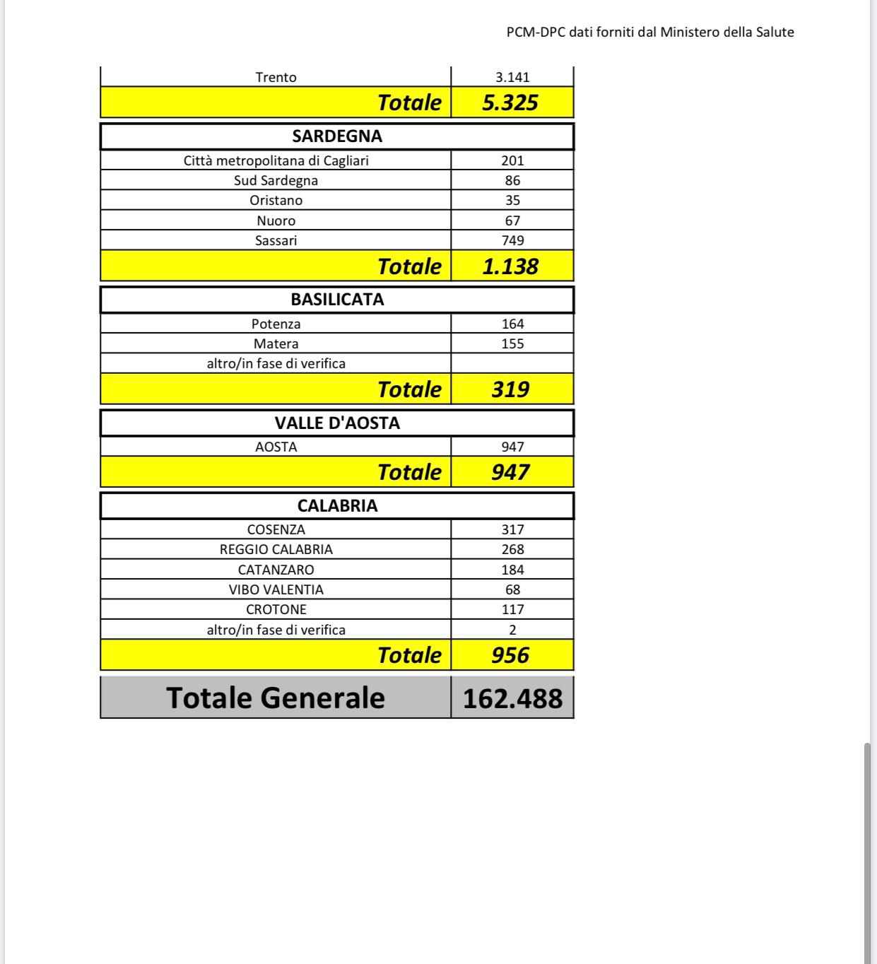 Coronavirus, diramato l’ultimo bollettino della Protezione Civile con i dati aggiornati in Italia. I casi attuali sono 104.291 (+675), i morti 21.067 (+602) e i guariti 37.130 (+1.695). Il totale dei casi complessivi sale così a 162.488(+2.972).