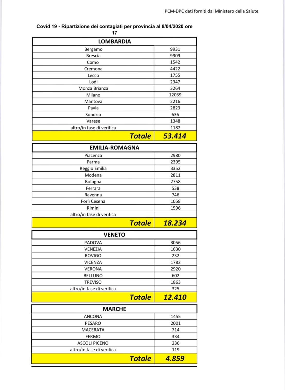 Coronavirus: i dati aggiornati 8 aprile 2020 e la ripartizione per Regione