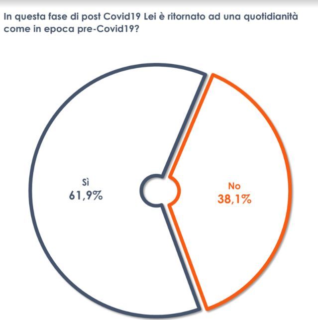ROMA (ITALPRESS) – Dopo l’emergenza Covid19 che ha stravolto tutte le nostre abitudini, gli italiani stanno cercando di tornare alla loro quotidianità. Un ritorno alle abitudini che, per la maggioranza degli intervistati, sta avvenendo in maniera graduale. Quasi 2 italiani su 5, invece, non riescono ancora ad avere una quotidianità che si avvicini a quella pre Covid19, sia per i risvolti sanitari sia per quelli economici dovuti ad una riduzione delle entrate. E’ quanto risulta da un sondaggio di Euromedia Research.