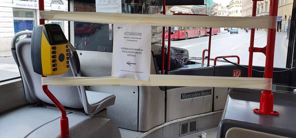L’azienda Atac di Roma, già nei giorni scorsi, aveva annunciato l’adozione di una nuova misura per tutelare la salute di tutti: ‘A partire da lunedì prossimo, 9 marzo, il personale di guida, salvo casi di emergenza, non aprirà la porta anteriore delle vetture per le quali non è disponibile l’accesso separato alla cabina guida. Sarà consentito l’utilizzo della porta centrale e/o posteriore. La misura rimarrà operativa fino al termine dell’emergenza sanitaria’.