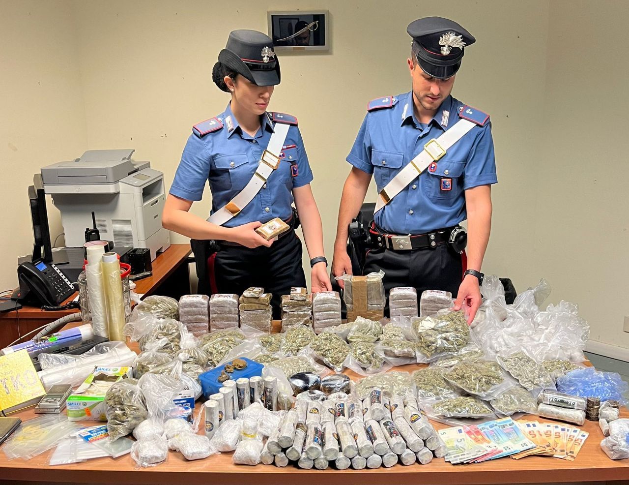 Nel corso del medesimo servizio, i Carabinieri sono intervenuti anche presso una abitazione e un box adibito a palestra, utilizzato da un 53enne di origini siciliane. Qui all’esito di un’approfondita perquisizione, i militari hanno rinvenuto oltre 13 kg di hashish e 2,5 kg di marijuana, suddivise in numerosi involucri, panetti, buste e cilindri, da cui è stato accertato erano ricavabili oltre 241.000 dosi medie singole.