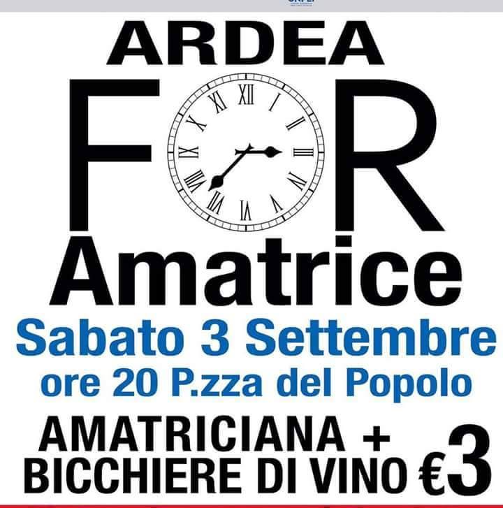 Grande successo ieri per l’evento “Ardea for Amatrice”, promosso dal Comitato Spontaneo Cittadini, in collaborazione con la Pro Loco di Ardea. L’appuntamento alle ore 20 in Piazza del Popolo puntava a raccogliere fondi per le zone terremotate attraverso una cena a base di amatriciana, con un bicchiere di vino. Per ogni portata sono stati raccolti 3 €, che i promotori intendono donare interamente alle zone colpite dal terremoto.