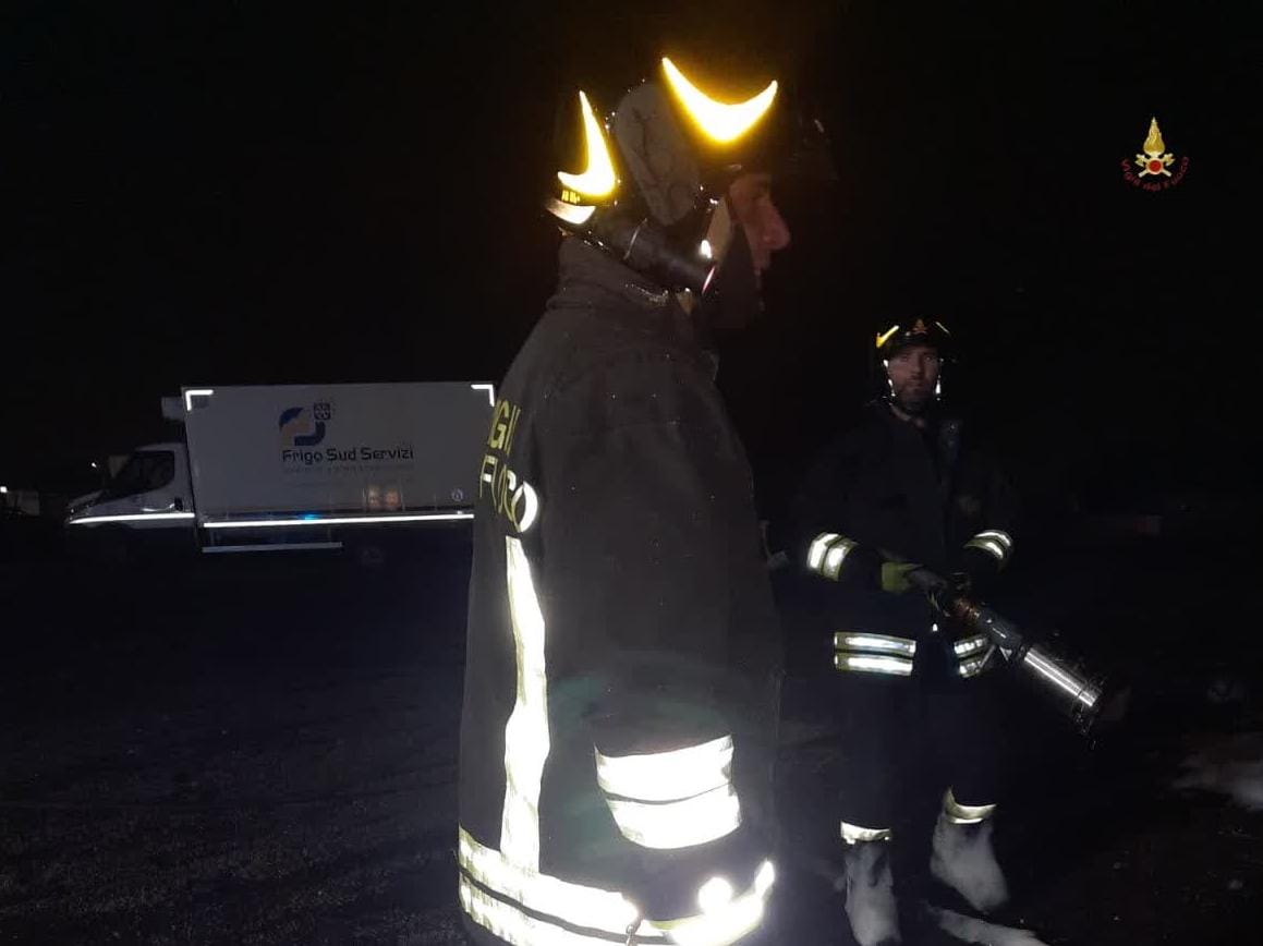 intervento Vigili del Fuoco per incendio furgoni frigorifero a Ciampino