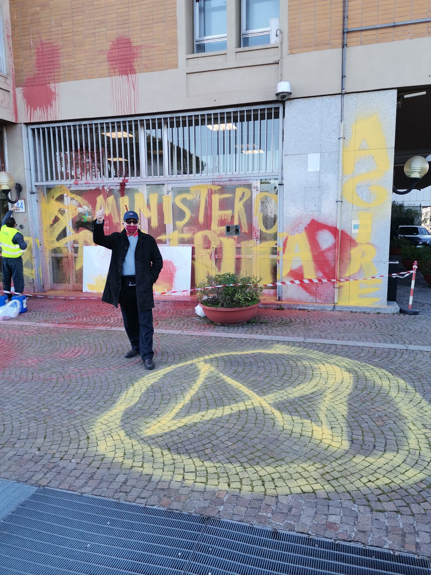 Roma. E’ stata davvero una mattinata turbolenta e molto movimentata al MiTe di via Cristoforo Colombo e via Capitan Bavastro, qui nella Capitale. Di certo non una mattina consueta, come le altre. Il Ministero della Transizione Ecologica è stato bersagliato da circa 14 attivisti del movimento per l’ambiente che hanno deciso di farla davvero ”sporca” questa volta. Infatti, si sono recati in sede ed hanno iniziato ad imbrattare tutte le pareti esterne dell’edificio con delle vernici che di certo non sono passate inosservati. In giallo e in rosso hanno scritto sui muri “Ministero della truffa” e “Ministero delle bugie”. Per guardare il video testimonianza delle scritte cliccare QUI.