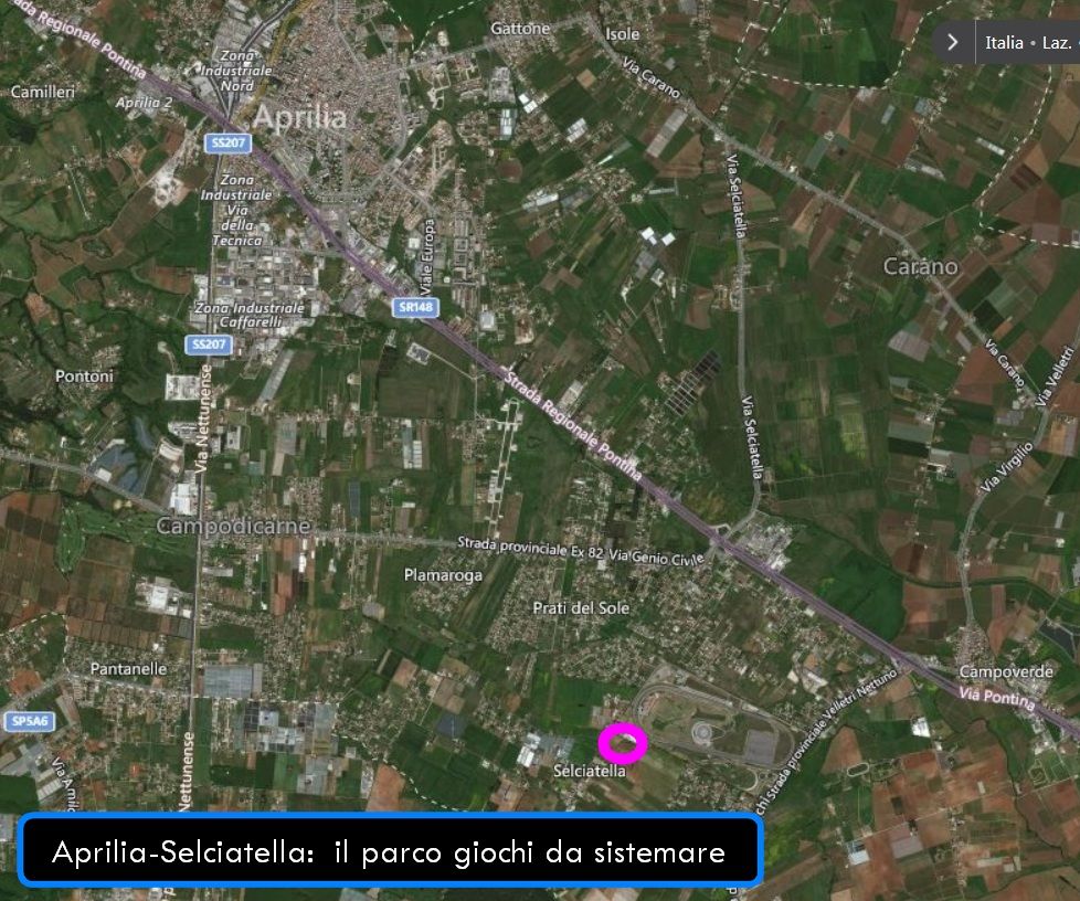 “Nelle foto allegate – scrivono dall’associazione – descriviamo lo stato di abbandono in cui versa il parco giochi di via Selciatella, quasi di fronte alle scuole elementari del civico 192.