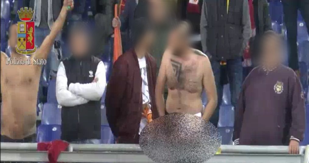 Durante la gara inoltre, all’interno della curva sud, è stato immortalato dalle immagini un tifoso della Roma responsabile dello scavalcamento delle balaustre e di atti osceni in luogo pubblico, aggravati dalla presenza di minori. L’uomo, pregiudicato, è stato denunciato, sottoposto a DASPO per 5 anni, all’avviso orale del Questore e al divieto di ritorno nel comune di Roma; sanzionato inoltre con 127 euro per l’occupazione dei posti destinati alle emergenze.