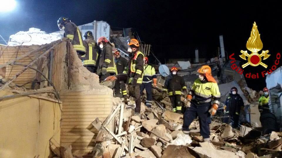 Aurora, 8 anni, e la mamma Deborah non sono ancora state tirate fuori, ma sembra che i soccorritori siano in contatto con la bambina, che da sotto i calcinacci avrebbe fatto sentire la sua voce. Trovate fortunatamente vive le altre due persone, un uomo e una donna, che risultavano disperse questo pomeriggio, grazie all’aiuto dei cani da materia che hanno fiutato il punto esatto in cui scavare. Dalle 17,00 sono state accese le cellule fotoelettriche che consentono di lavorare anche di notte, per cercare di trovare il prima possibile le due persone che ancora mancano all’appello.