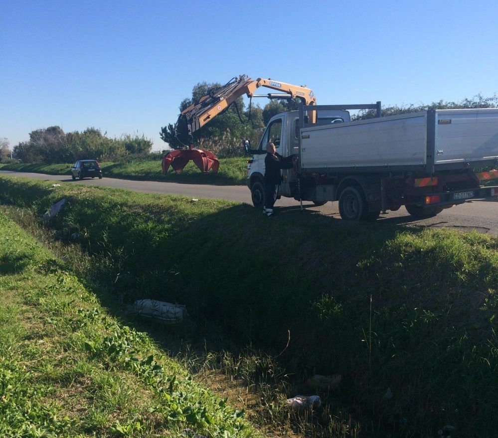 Si sta svolgendo in queste ore l’intervento, programmato da tempo, di rimozione dei rifiuti dal canale di bonifica che costeggia via Costalunga a Isola Sacra. Un mezzo per la raccolta sta prelevando con il ragno carcasse di frigoriferi, vasche da bagno, divani, pannelli di legno e altri ingombranti presenti all’interno del fosso, con l’ausilio di un altro mezzo. Un’operazione condotta dal Consorzio di Bonifica, dall’Ufficio Ambiente coordinato da Francesco Giambanco, da una pattuglia della Polizia Locale e dall’Ati. “Questa operazione viene realizzata dopo il sopralluogo che abbiamo svolto un paio di settimane fa con la Polizia Locale – sottolinea l’Assessore all’Ambiente del Comune di Fiumicino, Roberto Cini – durante il quale abbiamo rilevato questo malcostume di abbandono di rifiuti nei nostri canali. Abbiamo subito allertato il Consorzio di Bonifica che d’intesa con l’Ati e l’Ufficio Ambiente ha predisposto l’intervento – conclude Cini – che si sta realizzando oggi”.