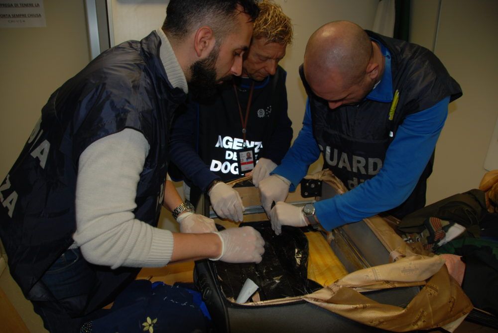 Le attività hanno permesso di intercettare 7 corrieri provenienti dalle predette aree a rischio, trovati in possesso di oltre 16 chili di cocaina. Ampio il repertorio dei metodi di occultamento adottati per tentare di eludere la fitta “rete” dei controlli: dai circa 12 kg. rinvenuti all’interno di doppifondi ricavati nei bagagli di quattro trafficanti, tre in arrivo dal Brasile e uno dalla Repubblica Dominicana, al pericolosissimo ingerimento di ovuli, da parte di altri tre passeggeri provenienti rispettivamente dalla Nigeria, dal Brasile e dalla Repubblica Dominicana, svelato grazie al controllo ai raggi x che ha evidenziato la presenza nell’addome di complessivi 176 ovuli contenenti oltre quattro chilogrammi di cocaina. L’elevata purezza dell’enorme quantitativo di droga sequestrata avrebbe consentito alle organizzazioni criminali di immettere sul mercato oltre trecentomila dosi che avrebbero garantito guadagni per oltre 5 milioni di euro