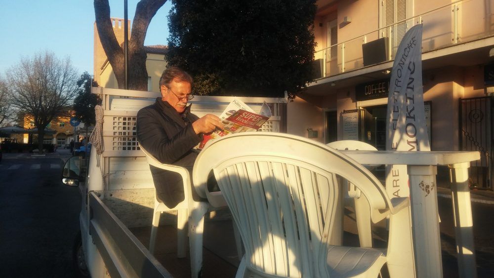 Continua a essere protagonista il furgoncino di via Orazio, a Pomezia. Dopo aver “ospitato” la briscola di quattro irriducibili giocatori di carte, oggi è il giorno della cultura. A occupare l’insolito “suolo pubblico” un uomo intento nella lettura.