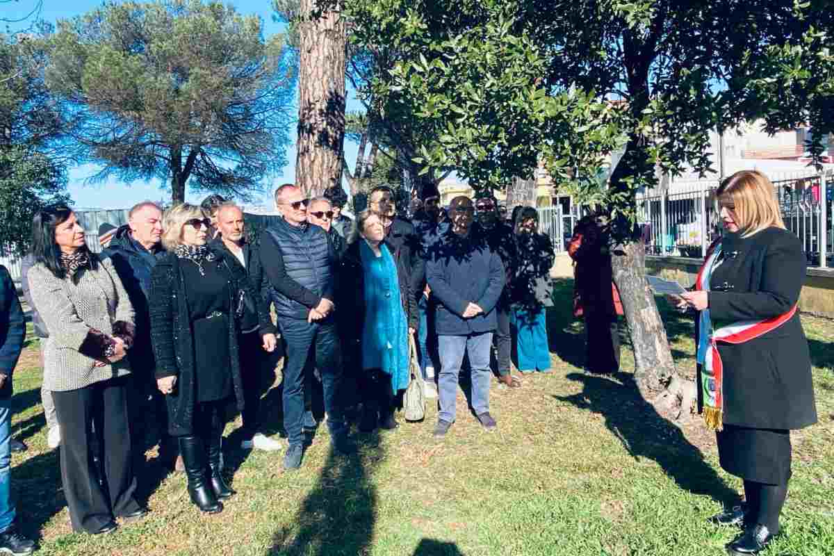 Giorno della memoria, iniziativa promossa a Pomezia dall’Amministrazione Comunale presso il parco delle Rimembranze. Presente il Sindaco Veronica Felici, assessori e consiglieri, oltre al Gonfalone della Città di Pomezia.