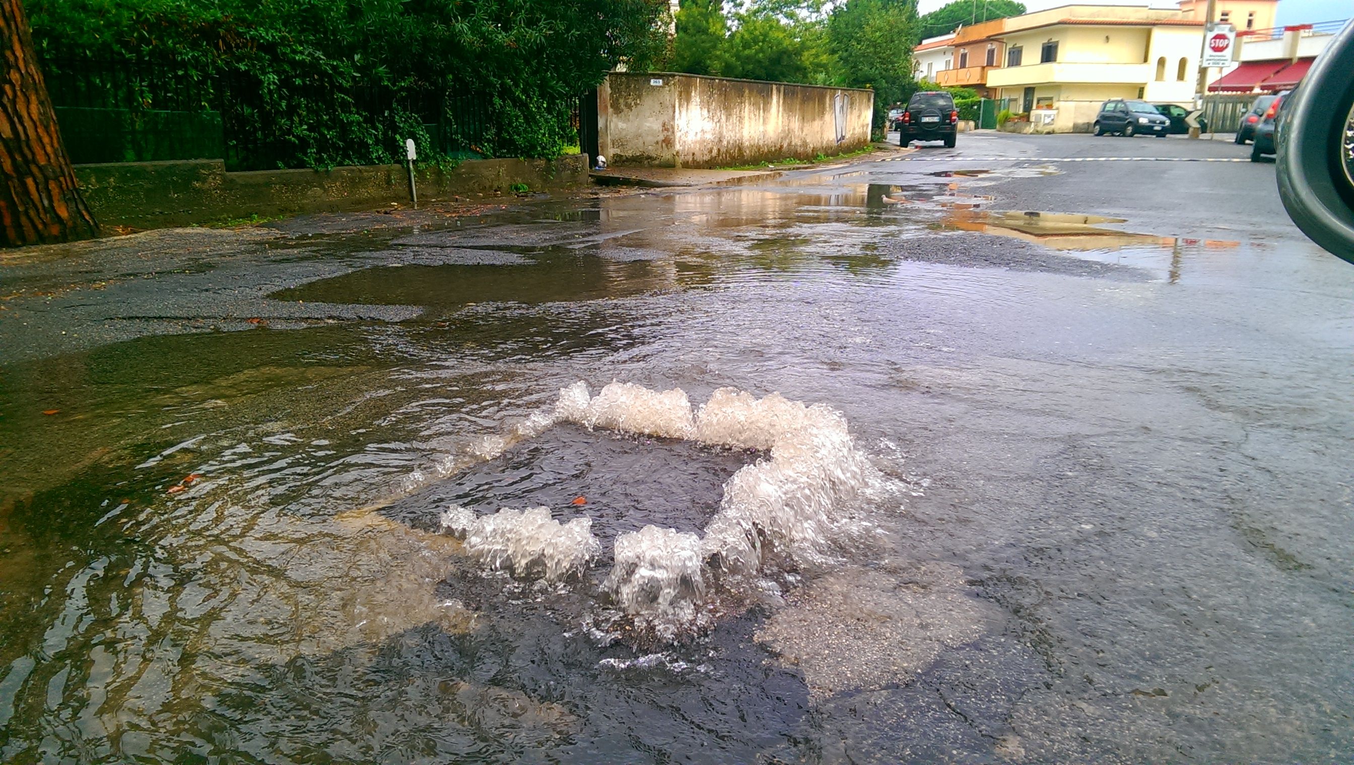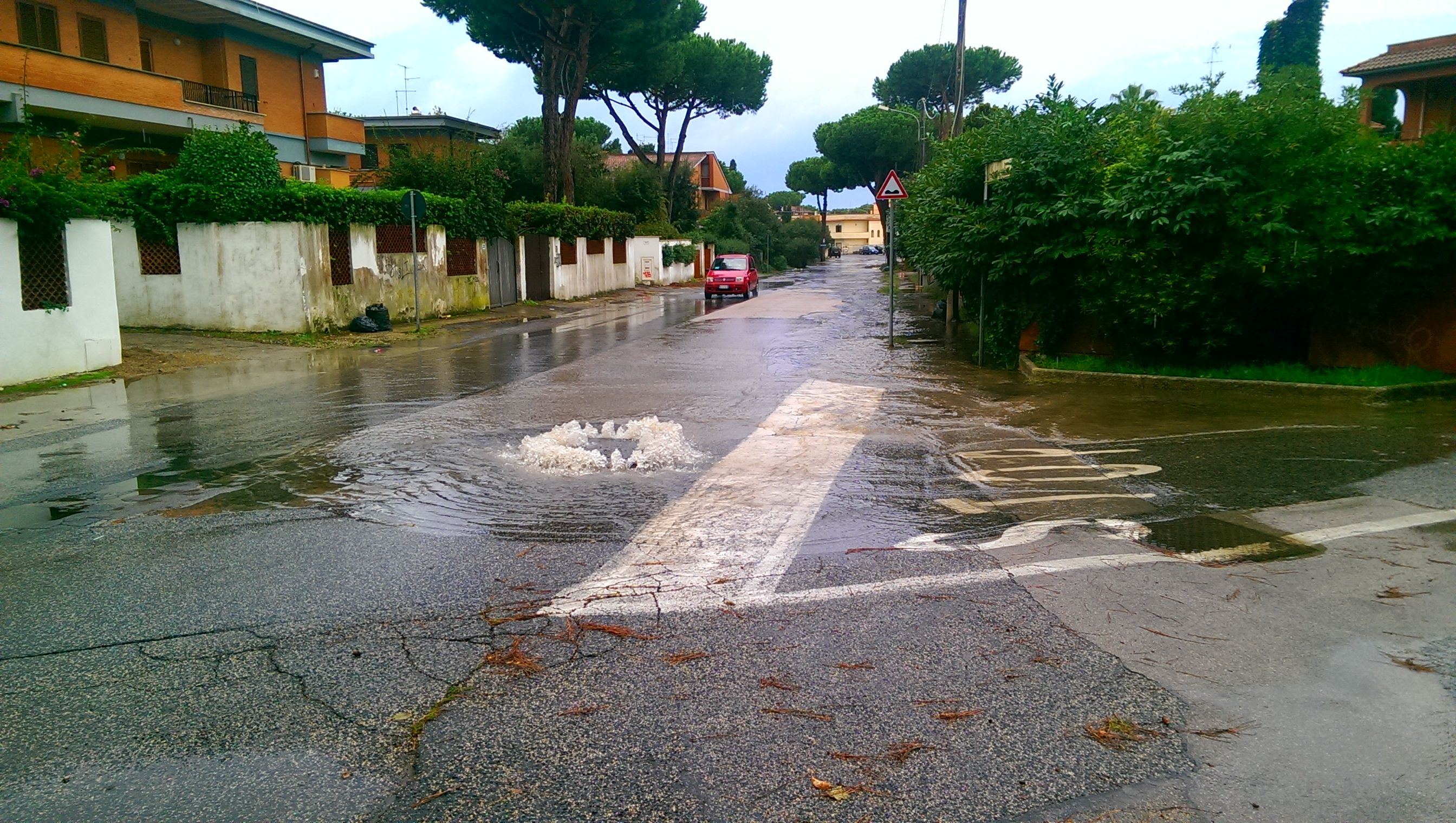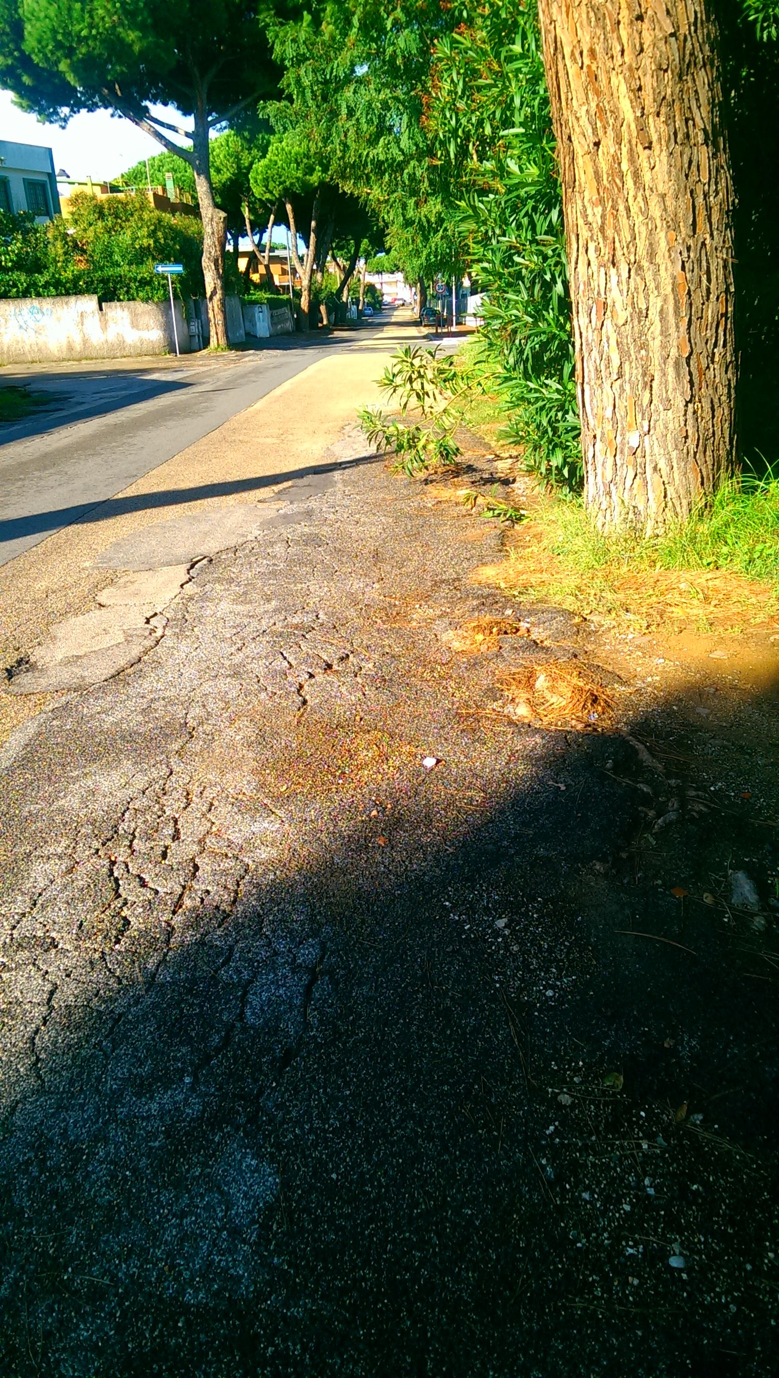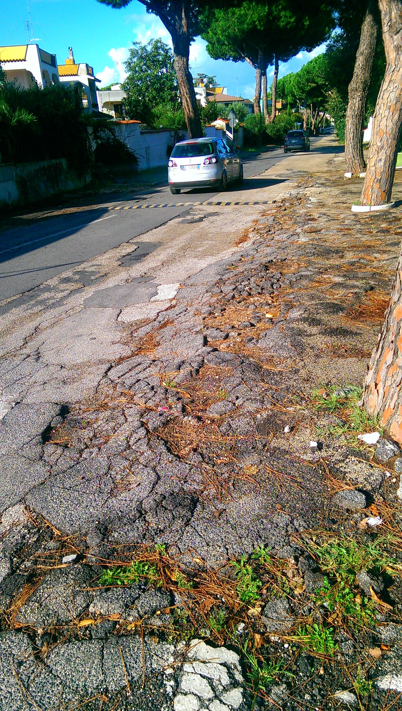 Le immagini mostrano il manto stradale disastrato dalle radici, ma anche i tombini che si sollevano quando piove con allagamento stradale. Un altro problema sentito dai residenti è la mancanza del marciapiede, della segnaletica di mezzeria e laterale e dell’illuminazione pubblica.