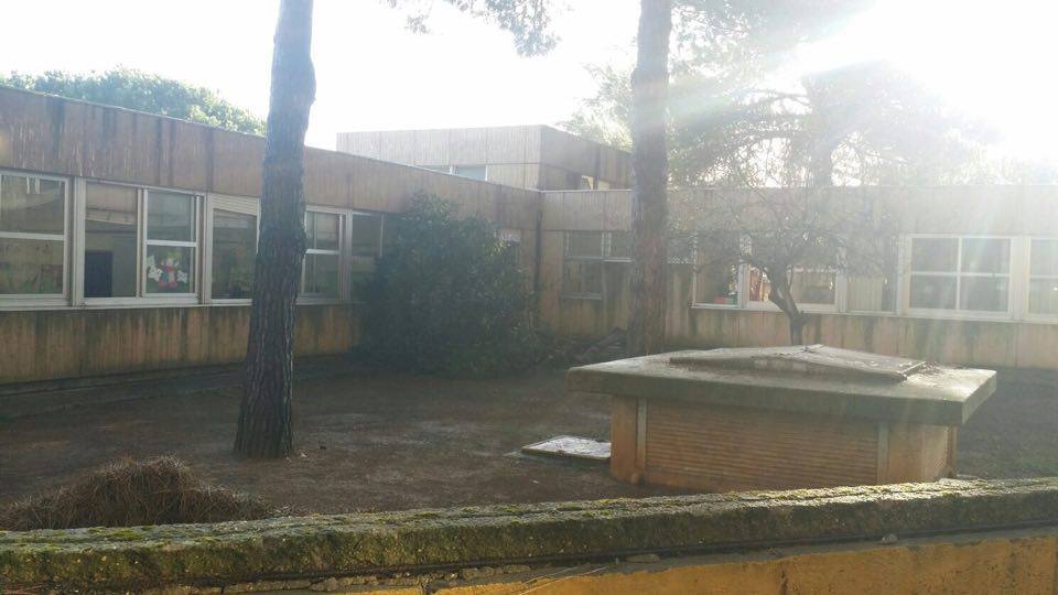 Maltempo, cade un albero all’interno della scuola Trilussa di Pomezia