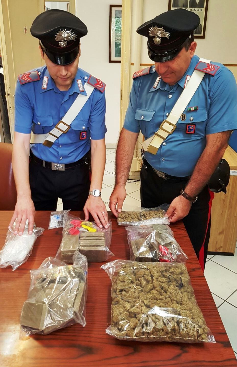 L’uomo è stato trovato in possesso di circa 800 grammi di marijuana, motivo per il quale gli uomini dell’Arma hanno subito perquisito la sua abitazione, dove hanno trovato altri 2,5 kg di Hashish.