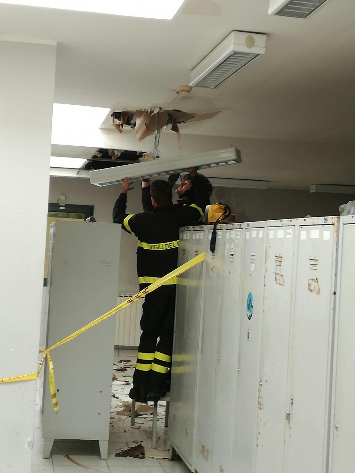 Ostia: crolla il soffitto degli spogliatoi nella caserma della polizia locale, intervengono i pompieri (foto)
