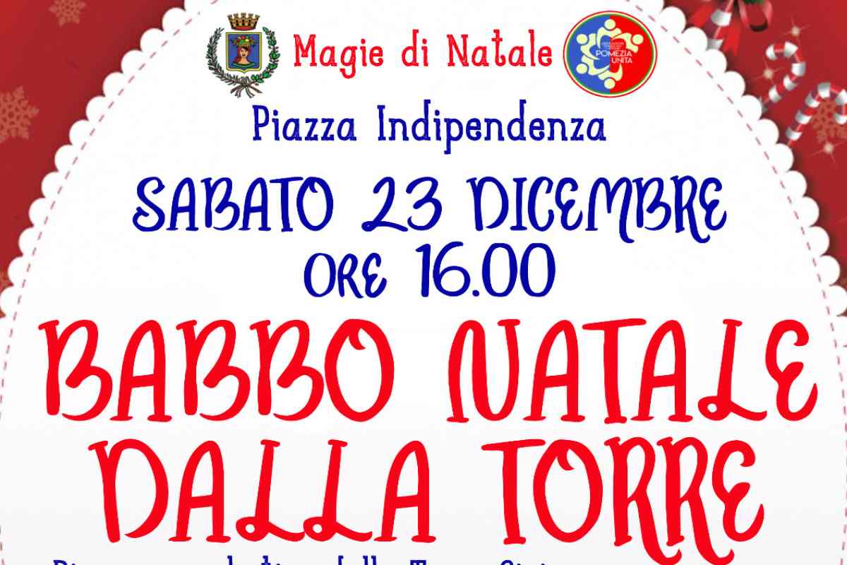 Prosegue la rassegna degli eventi natalizi a Pomezia. Sabato prossimo Babbo Natale, per la gioia dei bambini, scenderà dalla torre civica. Per l’occasione saranno distribuiti i doni ai presenti.